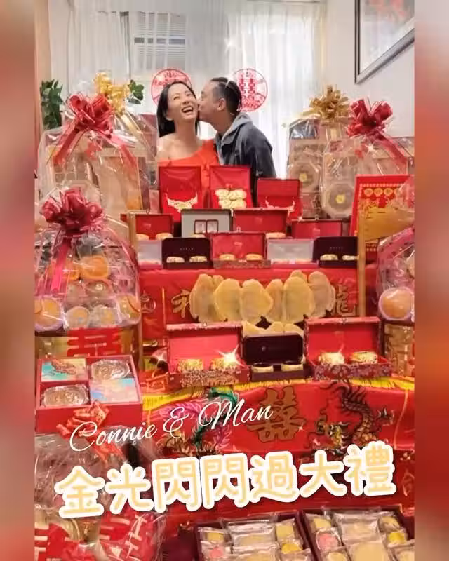 恭喜!41歲晶女郎宣布結婚,過大禮金器擺滿地,12對龍鳳鈪金閃閃!