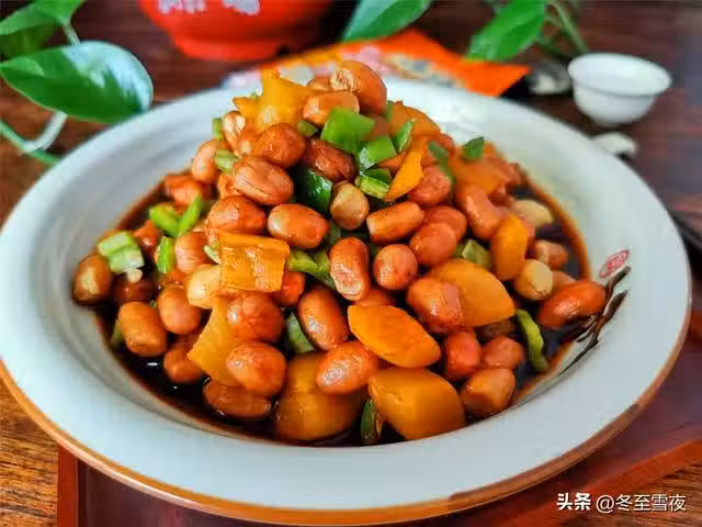 【老醋花生米】所需材料:花生米(生)200克、尖椒1個、烏江蘿蔔1袋、鹽適量、陳醋3湯匙、生抽2湯匙、白糖半湯匙、高度白酒半湯匙、