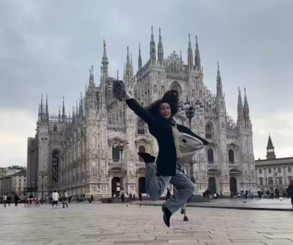 42歲郭晶晶曬米蘭之旅,開心上演騰空一字馬,活力滿格毫無包袱