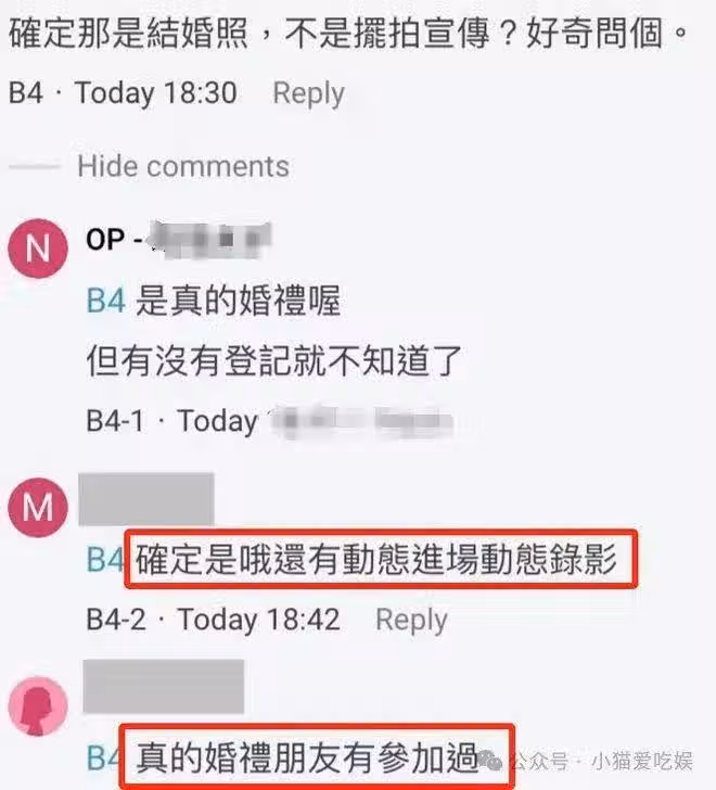 但這一說法很快被爆料博主否認了,該博主強調自己的朋友就去參加過Mandy的婚禮,這場婚禮是2018年真實發生的,不是宣傳片,而且還曾拍過一段兩人進場的視訊,但之前刪掉了。