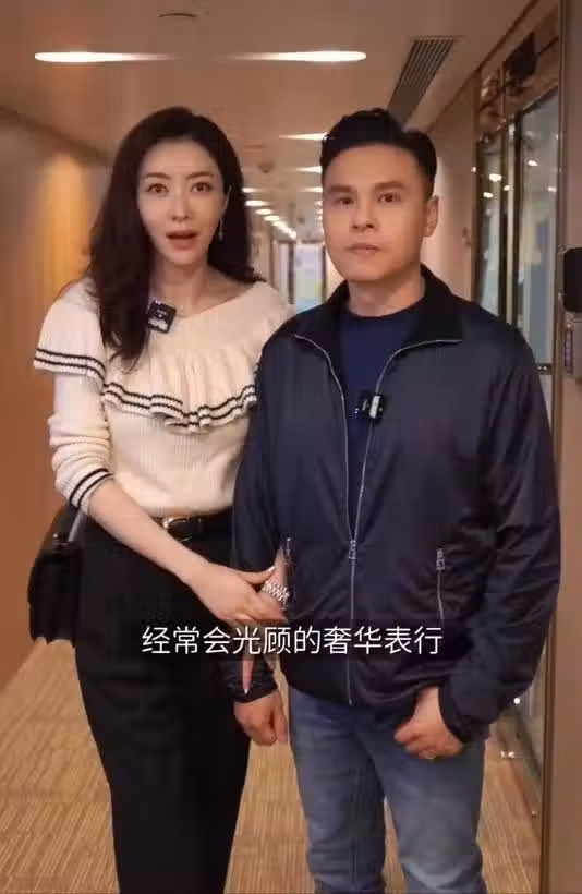 片中熊黛林和老公都以休閒裝亮相,兩夫妻打扮的都很低調,想來也是希望不被人打擾,進店後熊黛林試戴了幾塊表,但是似乎沒有找到很合心意的,直到一塊玫瑰金色的腕錶映入眼帘,熊黛林似乎才有了心動的感覺。