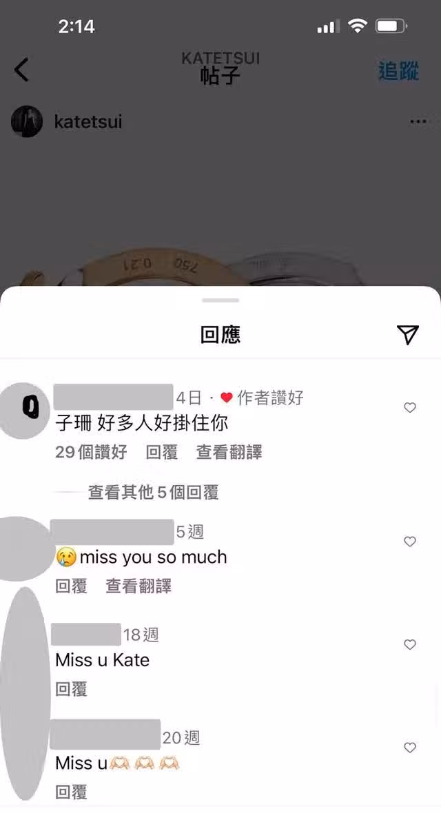 儘管這個帳號在2017年之後已停止更新,但讓人意外的是徐子珊竟然點贊了其中一位網民的留言,而這個小小的舉動即惹來網民紛紛猜測,徐子珊是否即將復出。