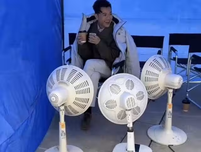 近日,梁漢文在內地拍攝廣告,雖然在大家眼中他不算什麼大咖,但是也獲得了天王級的待遇,不但在休息的時候有自己的私人帳篷,還獲得了不少工作人員的照顧,由於當天溫度較低,梁漢文為了工作的需要沒有穿太多,他忍不住說了一聲「真冷啊」,就立馬有工作人員拿來三個小太陽。