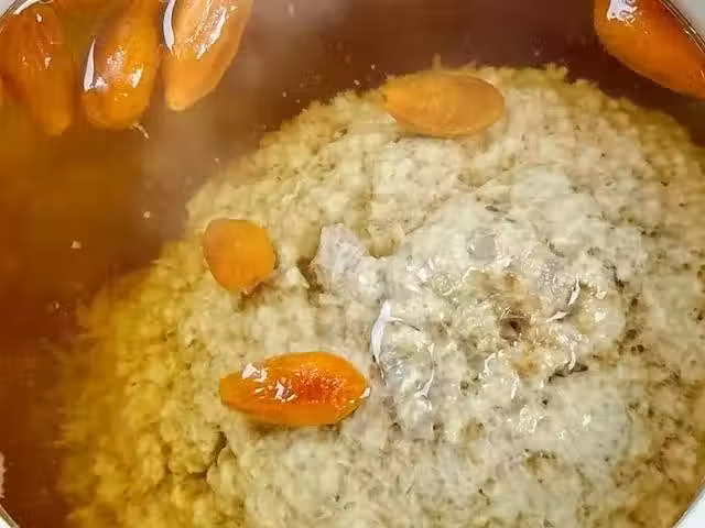 3、時間到,加入適量食鹽調味,撒上枸杞子,再燉煮十分鐘即可出鍋開吃。
