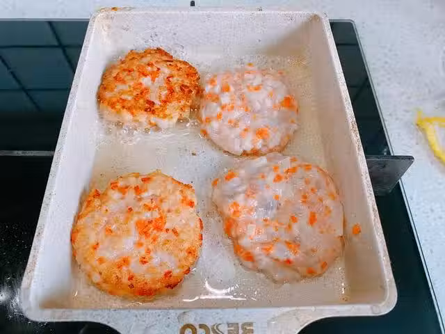 5、煎熟之後,出鍋裝盤,好吃的蝦仁藕餅完成,吃起來軟軟的,還帶有點汁水,鮮嫩多汁,小朋友特別喜歡。。。