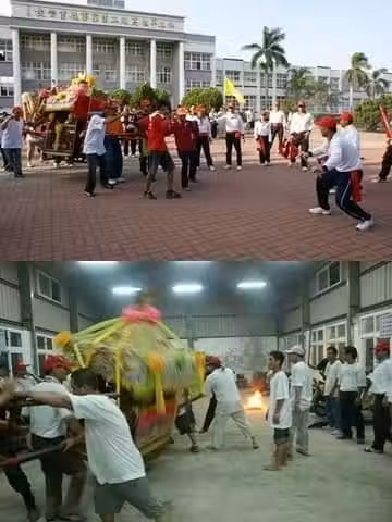 這起媽祖婆捉鬼記真的不可思議,上午8時,甫結束12年一次九朝王醮盛典的賜福宮天上聖母媽祖,赴臺南南鯤鯓代天府進香,下午返程時,順道應邀至白雲村的華德工家校園走走。屬於綜合高中、高職學製的華德工家,創校至今50年,堪稱是茄萣鄉的最高學府,全校1300多名學生有7成來自臺南等外縣市,茄萣本地學生約佔3成,由於此次賜福宮九朝王醮盛典,華德工家茄萣在地學子也投入民俗藝陣陣容,校長徐步魁認為校方應入境隨俗,請媽祖婆來校園巡視一下,順便保祐師生平安。當天校方在學校大門口設香案,由校長徐步魁率領各一級主管馨香列隊迎接媽祖婆、王爺等眾神明的駕到,媽祖婆一進入校園,就直指校園操場的廢棄碉堡有許多厲鬼,由於當地屬白砂崙萬福宮管轄,媽祖婆除逕赴萬福宮向王爺公打聲招呼外,並立即調兵遣將聯合廟內另六頂神轎包括大王公、二王公、三王公、四王公、五王公和副媽長驅直入至操場驅鬼。