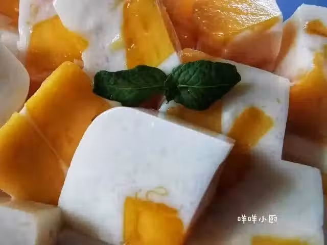 大芒果半個、牛奶250毫升、白涼粉30克、白砂糖20克