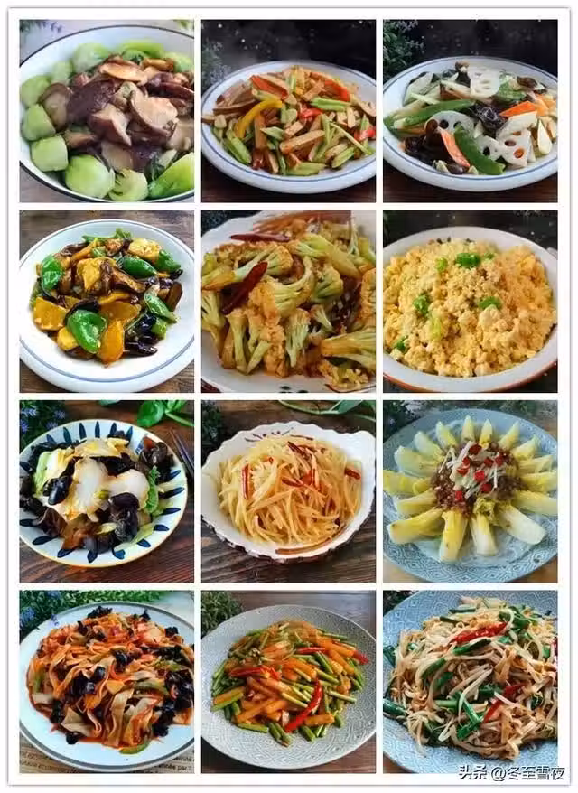 十二道家常菜素菜,素凈開胃,不放肉也好吃下飯,換著樣的做