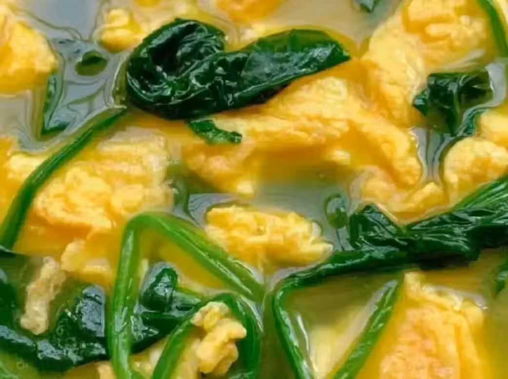 4、此時,將焯過水的菠菜放入蛋湯中,它們相互交融,形成一幅美麗的畫面。加入食鹽和胡椒粉進行調味,攪拌均勻,讓每一口都充滿鮮美的味道。當所有食材都煮至入味後,這道色香味俱佳的菠菜雞蛋湯便大功告成,可以盛出享用了。