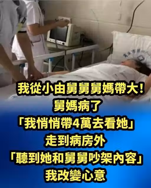 從小由舅舅舅媽帶大!舅媽病了「我悄悄帶4萬去看她」 走到病房外「聽到她和舅舅吵架內容」我改變心意