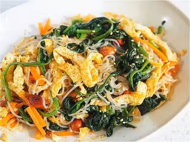 所需材料:菠菜半把,粉絲一把(約50克)雞蛋兩個,胡蘿蔔半根,生花生米30克,大蒜2瓣,白芝麻適量。涼拌汁:生抽3勺,米醋2勺,香油少許,白糖少許,鹽適量,辣椒粉花椒粉適量,老乾媽適量。(勺的量是陶瓷的那種湯匙)