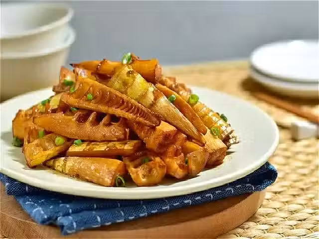 所需材料:雷筍2斤,生薑3克,醬油20克,料酒10克,鹽適量,冰糖5克,香油3克,食用油20克。