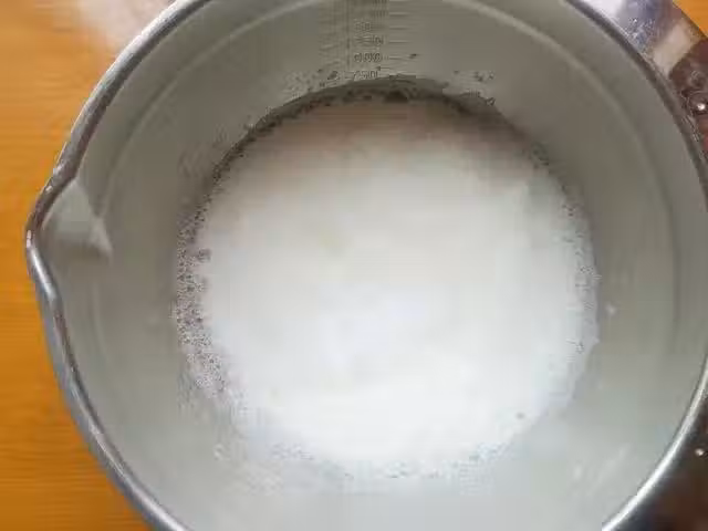 7、當打發到蛋白霜出現淺淺的紋路時,我們加入剩下的20克細砂糖,繼續高速打發。