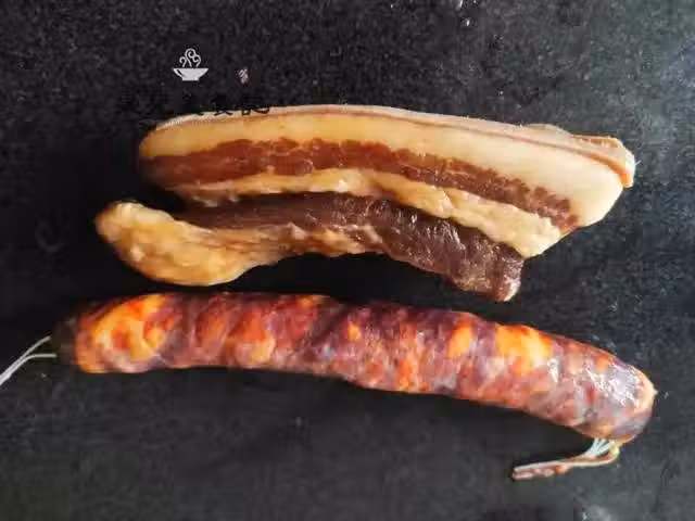 二、今天家裡人除了想吃臘肉還想吃香腸,也就一同放鍋里煮了,臘肉是五花肉有些肥,用來炒,香腸就直接煮熟切來吃,為了使臘肉炒出來不幹不硬又不咸,臘肉煮的時間會相對長一些,在煮的過程中可以根據臘肉的鹹淡,換一下水,如果做的臘肉鹹味剛剛好,就不用換水了,剛做好的臘肉,風乾時間不長,煮20~30分鐘即可,若臘肉是做了一段時間,風乾時間過長本身較干硬,需要多煮,當臘肉煮來不再干硬即可出鍋;