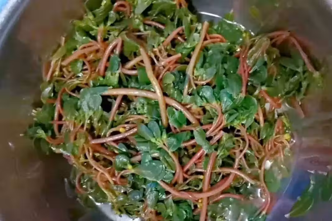 1、將摘回來的馬齒筧放到水裡清洗乾淨,鍋中燒水,水開起來以後把洗乾淨的馬齒筧倒進鍋中,並加入少許的食用油和食用鹽,水開之後再焯一分鐘撈出來過涼,然後擠干水分放到大碗裡備用。