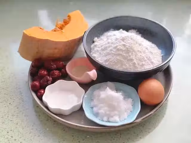 ①、準備好食材,將南瓜挖去瓜瓤,削去外皮,切成薄片裝在盤子中,上鍋蒸爛。蒸好後用料理機將南瓜打成細膩的南瓜泥,等南瓜泥晾涼至40度左右,將2克的酵母粉倒入南瓜泥中,攪拌均勻,靜置5分鐘。——(如果沒有料理機,也可以用勺子搗碎。一定要等南瓜泥晾涼後再加入酵母粉,溫度過高,酵母會失去活性。)