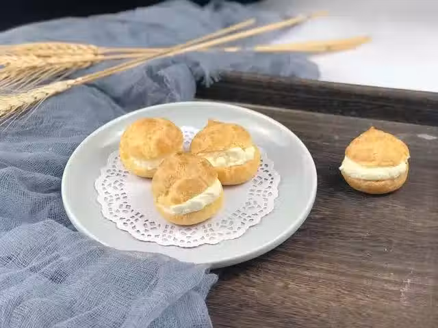 泡芙麵糊的調製,直接影響泡芙的成敗,泡芙麵糊的調製一般要有兩個過程完成,一個是燙麵,具體的方法是將水、油脂、鹽等材料讓進鍋中或者容器中,上火煮開,等黃油完全融化後再倒入過篩後的麵粉,用木勺或者刮刀快速攪拌,直至麵粉被燙熟,燙熟後關火,然後分多次加入蛋液攪拌均勻。不過不好把握這種方法,也可以將液體燒開後關火,倒入過篩後的麵粉攪拌至熟透,然後再挪到火上,開火稍稍加熱至麵糰成團,稍微晾涼後再加入蛋液攪拌均勻即可。