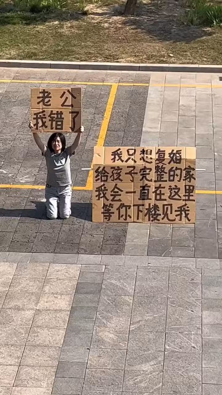 艷陽下跪6小時,單親媽舉牌求前夫復合畫面超催淚,沒想到卻爆出驚人內幕:她自作自受~
