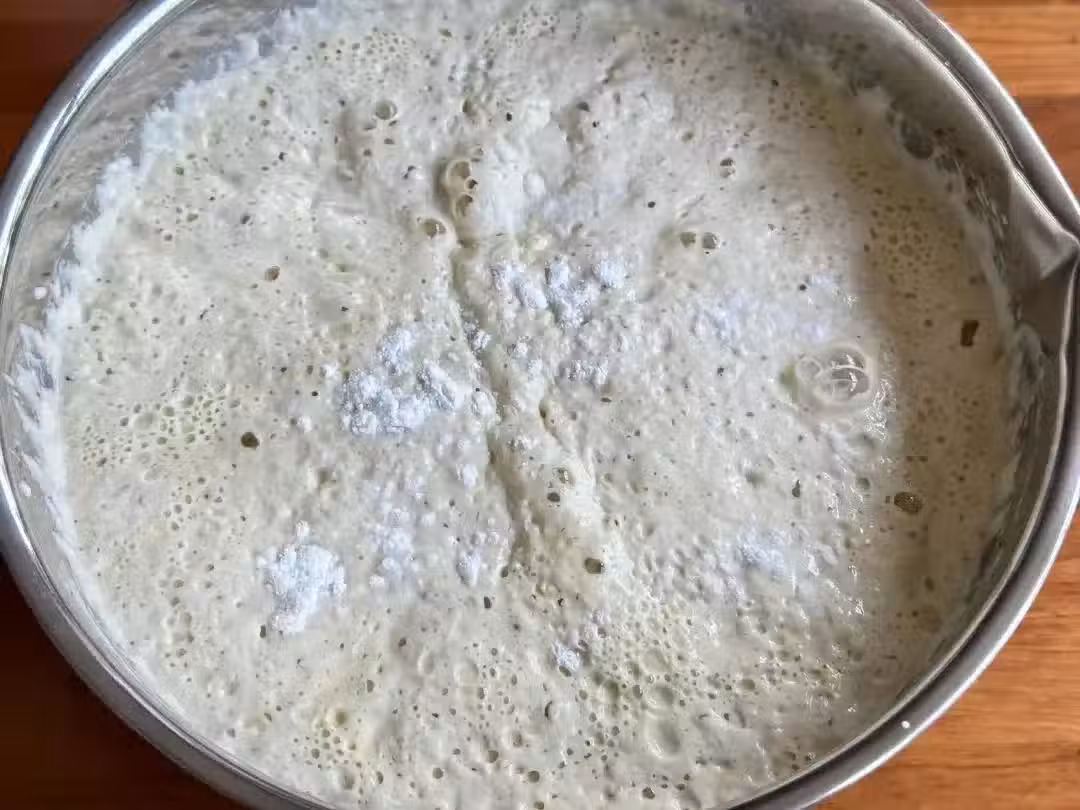 5、熱鍋,刷油,薄薄刷一層就可以,不要太多了;只要鍋不粘,不刷油也可以的,舀入鋪滿鍋底的麵糊,蓋上蓋子小火燜,燜至底金黃色,關火繼續燜1-2分鐘左右再打開,表面不粘手,有回彈就熟透了。