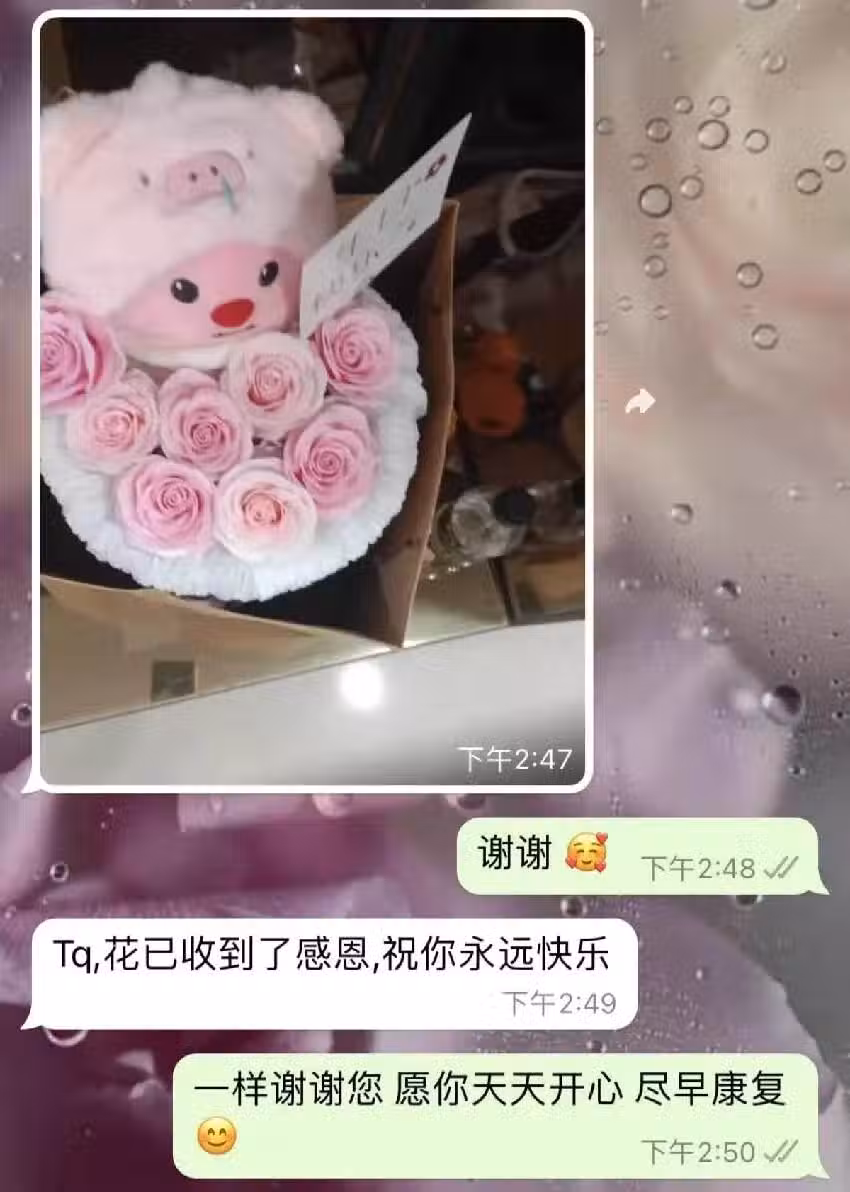 老闆當下不知所措,只能一直重復說著「開心就好、開心就好!」直到上車才哭著把老先生和妻子的故事告訴老公,同時也感慨好險老公今天有空陪同她送花。