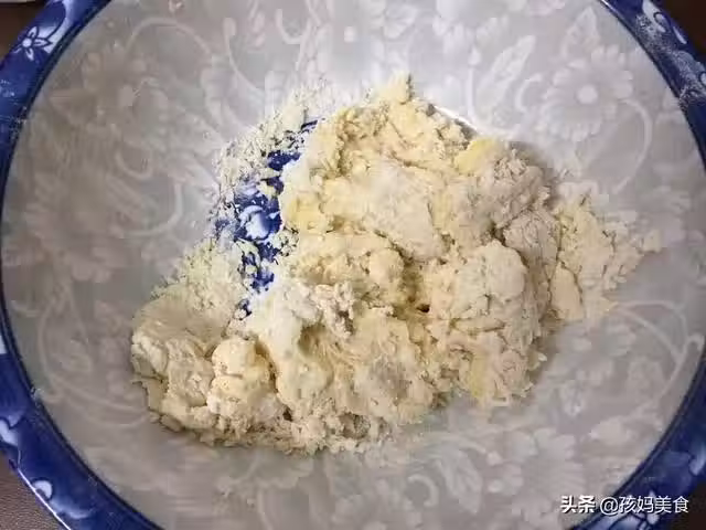 2、慢慢加入水用筷子攪拌成絮狀,因為麵粉不同吸水量不同,水的用量也會不同,預留10克隨時增減,麵糰宜軟不宜硬!