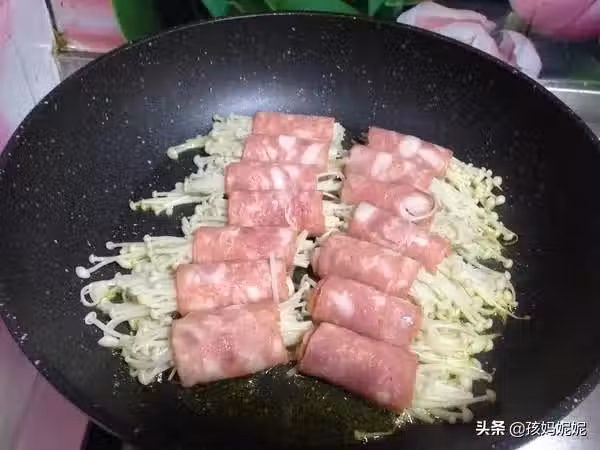 煎至一面定型,再翻另一面小火慢煎,讓培根卷都煎至金黃。