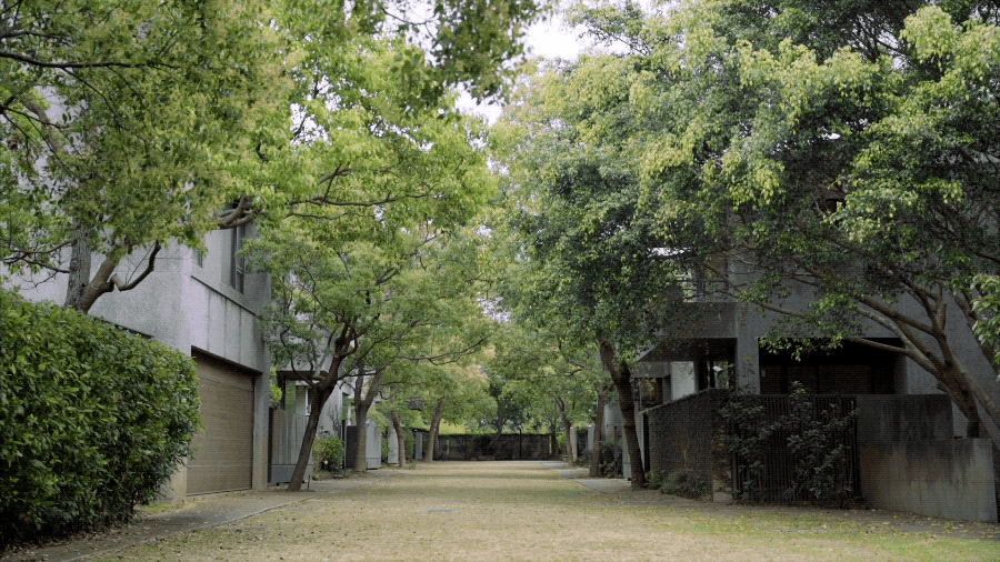 與一般住宅區內的柏油地面不同,窩村使用的是「固綠格」。格子外圍很堅硬,但中間有孔洞可以讓草皮生長,看上去也是綠油油的。