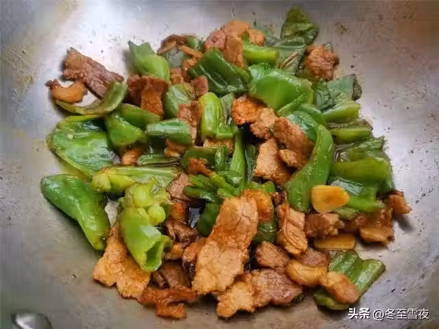 7.下入青椒塊,加入鹽,雞精,大火翻炒1分鐘左右,關火,盛出裝盤即可,一道好吃下飯的青椒炒肉片就做好了。