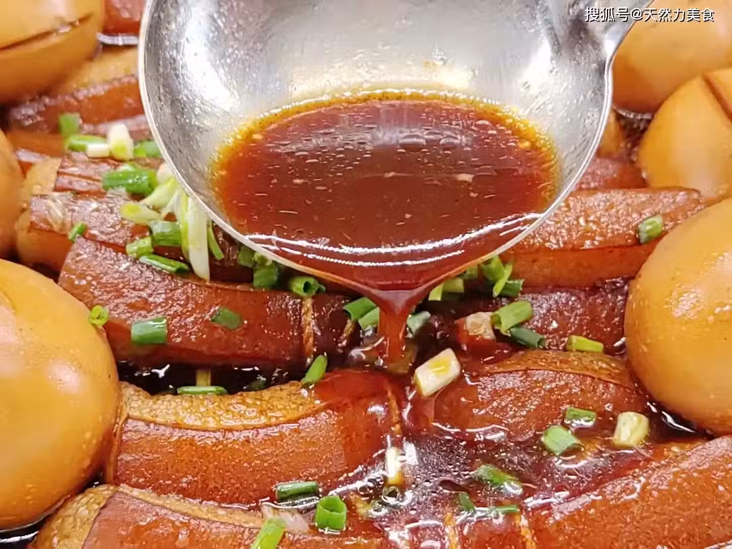 4、我們在燉把子肉的時候,如果發現鍋內的湯汁不夠的話,可以補開水進去,注意,一定是開水,不能加冷水。