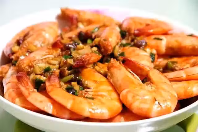 3.鍋中熱油,爆香蒜蓉,將大蝦下鍋煎,倒入天成一味鮮醬油提鮮。