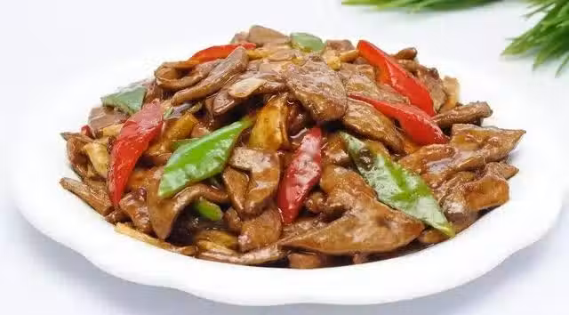 【準備材料】豬肝、胡蘿蔔、柿子椒、黑木耳、食鹽、醋、精、蔥、姜、料酒、生抽、澱粉、白糖、植物油