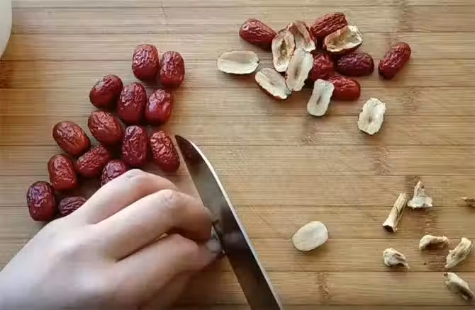5.準備一把大棗洗凈,切開兩半,去核備用。