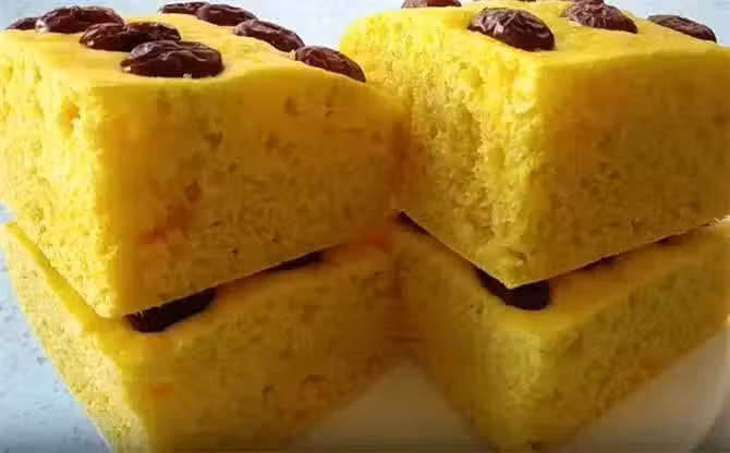 7.大家可以看到用油脂蒸的發糕特別容易脫模,而且邊緣非常的整潔乾淨,大家可以看到經過二次醒發的發糕,它氣孔特別的均勻,所以說它就不容易塌陷,而且這樣做出來的發糕口感特別的筋道不回縮。