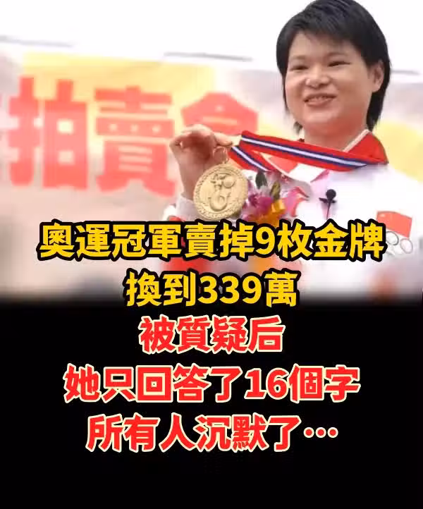 奧運冠軍賣掉9枚金牌,換到339萬,被質疑後,她只回答了16個字,所有人都沉默了…