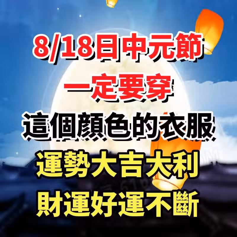 8/18日中元節,一定要穿「這個顏色的衣服」運勢大吉大利, 財運好運不斷!