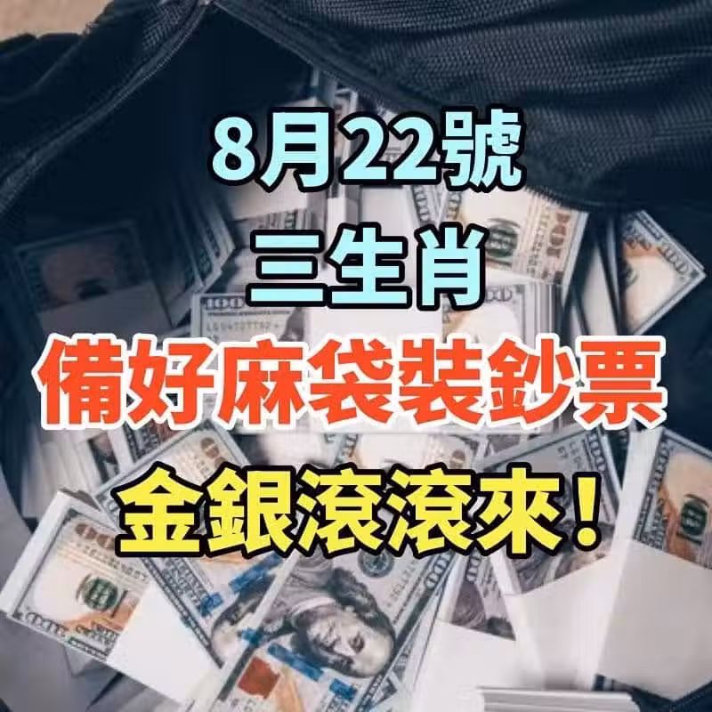 8月22號 三生肖 備好麻袋裝鈔票,金銀滾滾來!