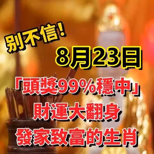 8月23日「頭獎99%穩中」財運大翻身,發家致富的生肖!