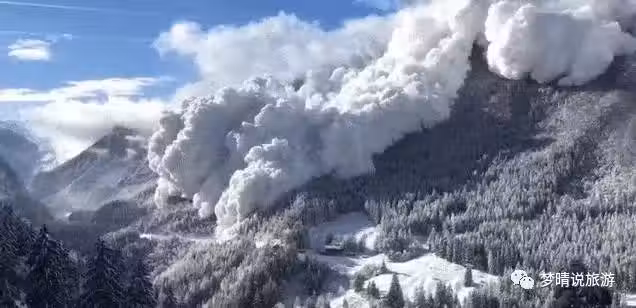 第十六張:雪崩爆發時的景像,瞬間可以淹沒一切……。大自然的憤怒就像一位化妝師,把整個山谷都打扮成了白雪皚皚的舞台。第十七張: