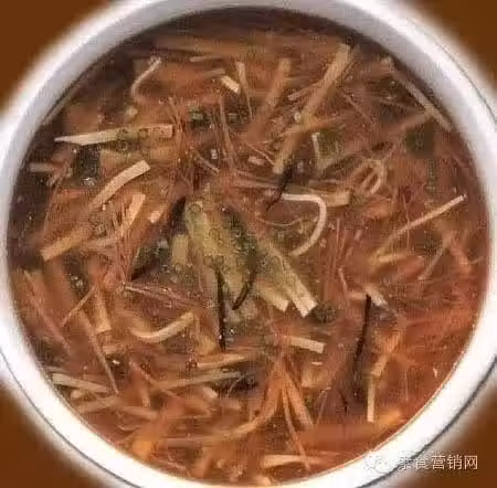 3、鍋內入水,放入其他材料,燒開,加入調味料,勾成較濃成羹,再入芹菜末及香油,即可盛羹盤內,底部要放一圓盤。