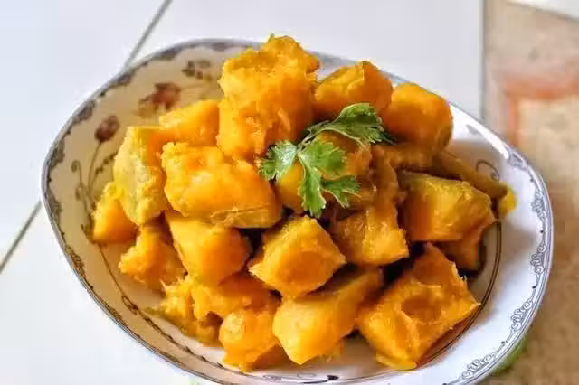 南瓜翻炒均勻後入冷水,水不要沒過南瓜