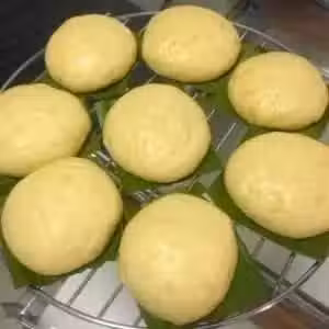 3)分次慢慢加入油揉勻, 將麵糰平均分成每粒約50g滾圓,放在香蕉葉上再稍壓扁。