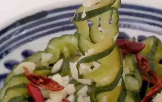 4. 炒鍋內倒少許橄欖油加熱,放花椒爆出香味後濾出花椒,將熱油淋在辣椒上烹香,倒入生抽,香醋,鹽和糖調勻成味汁