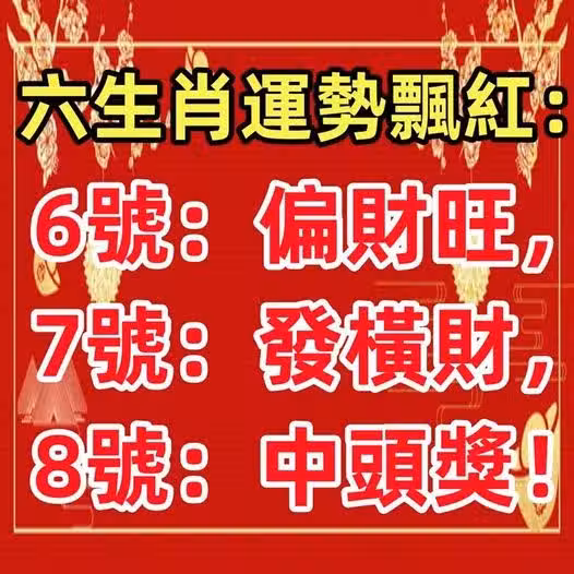 六大生肖運勢飄紅:10月6號偏財最旺,7號發橫財,8號中頭獎 !