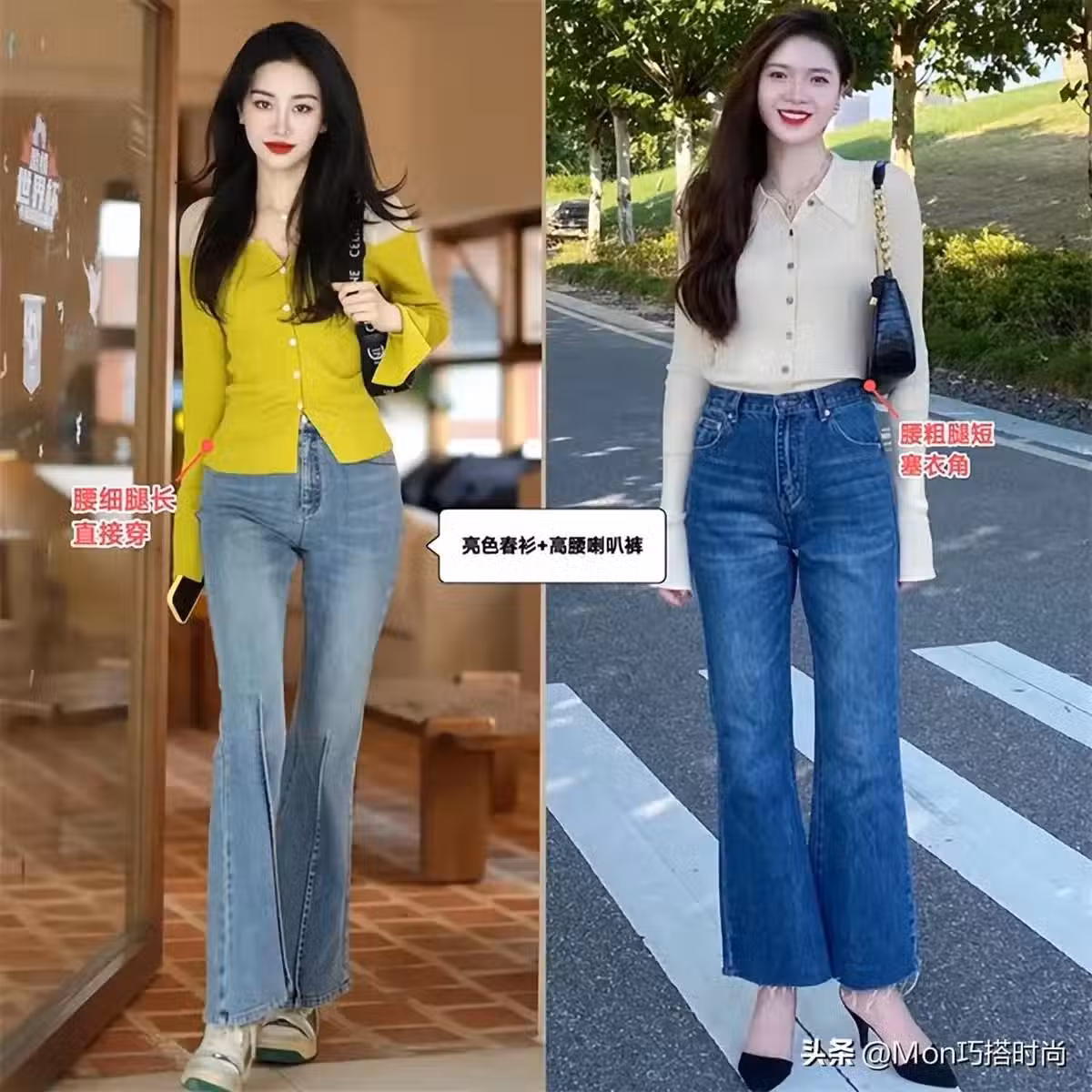這個春天想要更光鮮亮麗的姐妹, 一定要試一試用亮色春衫配包臀高腰喇叭褲。春衫直接穿要選短款,腿短腰粗可以將柔軟的襯衫塞在褲腰裡,總之, 抓住三七分比例,好身材就不在話下!