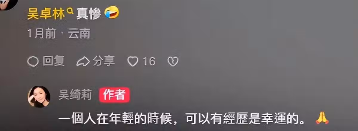 不過如今的吳綺莉已經看開了這一切,她表示一個人年輕的時候,可能有經歷也是一件幸福的事情。