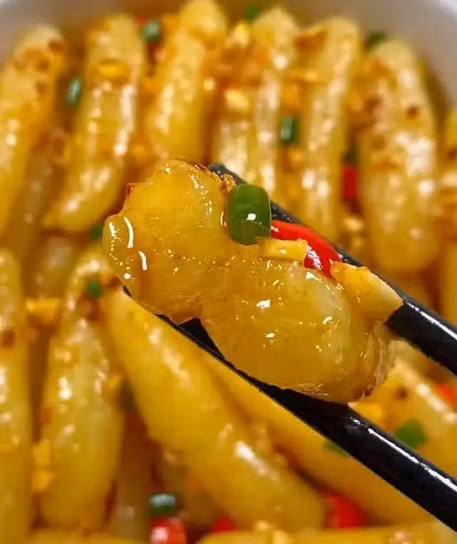 做法:碗中調料汁蒜末、小米辣、辣椒麵,淋上熱油加1勺香醋、生抽、少許糖、適量鹽攪拌均勻備用~