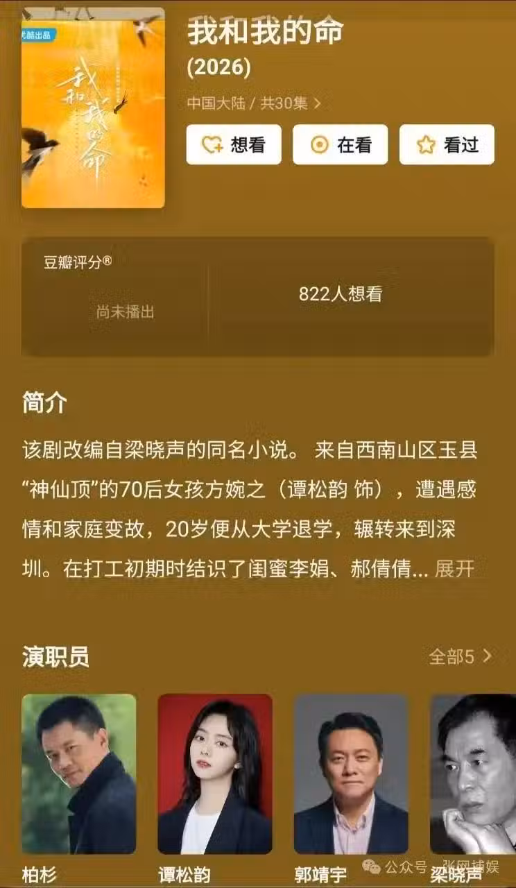 轉型力作!90後「收視女王」譚松韻新劇——《我和我的命》