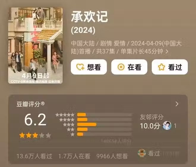 2024播放最高十部國產劇,趙麗穎、劉亦菲一部上榜,第十僅播33天