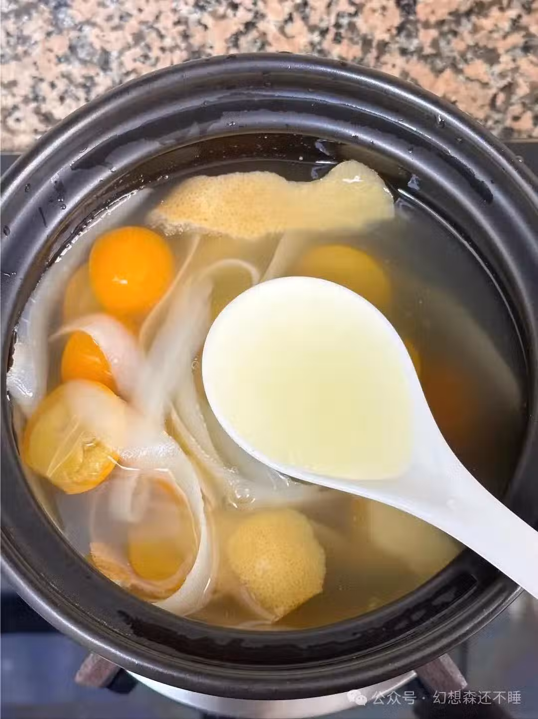食材放鍋里,加一升水,煮20分鐘,趁熱喝。這飲寒熱都能用,喉嚨不舒服,喝完超舒暢。金桔可厲害了,皮辛溫宣肺,能化痰止咳,比陳皮還厲害呢!