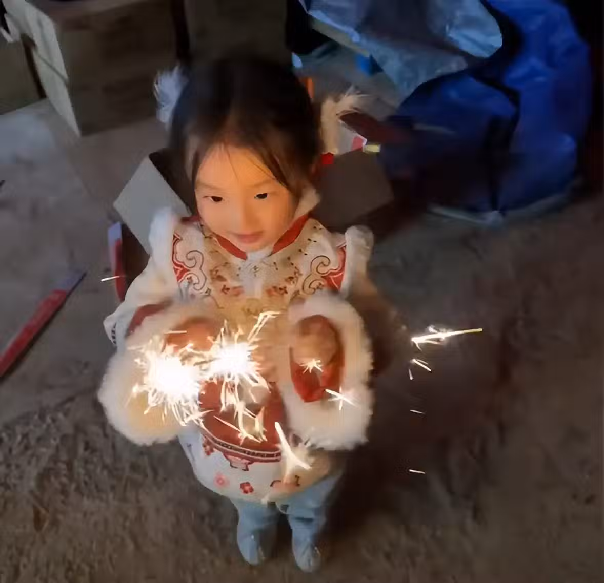 除了放煙花,全紅嬋另外一大快樂就是帶娃。她上傳的照片上有不少是和小朋友互動。嬋寶真的很喜歡小朋友,17歲的她個性活潑開朗,能和小孩子玩在一起。